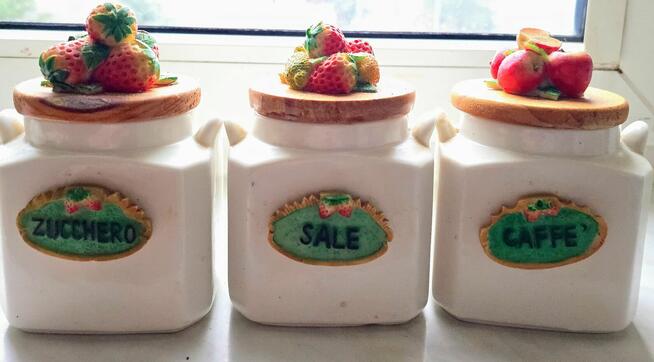 Zestaw trzech ceramicznych pojemników na przyprawy. Pojemniki posiadają praktyczne pokrywki i są idealne do przechowywania ...